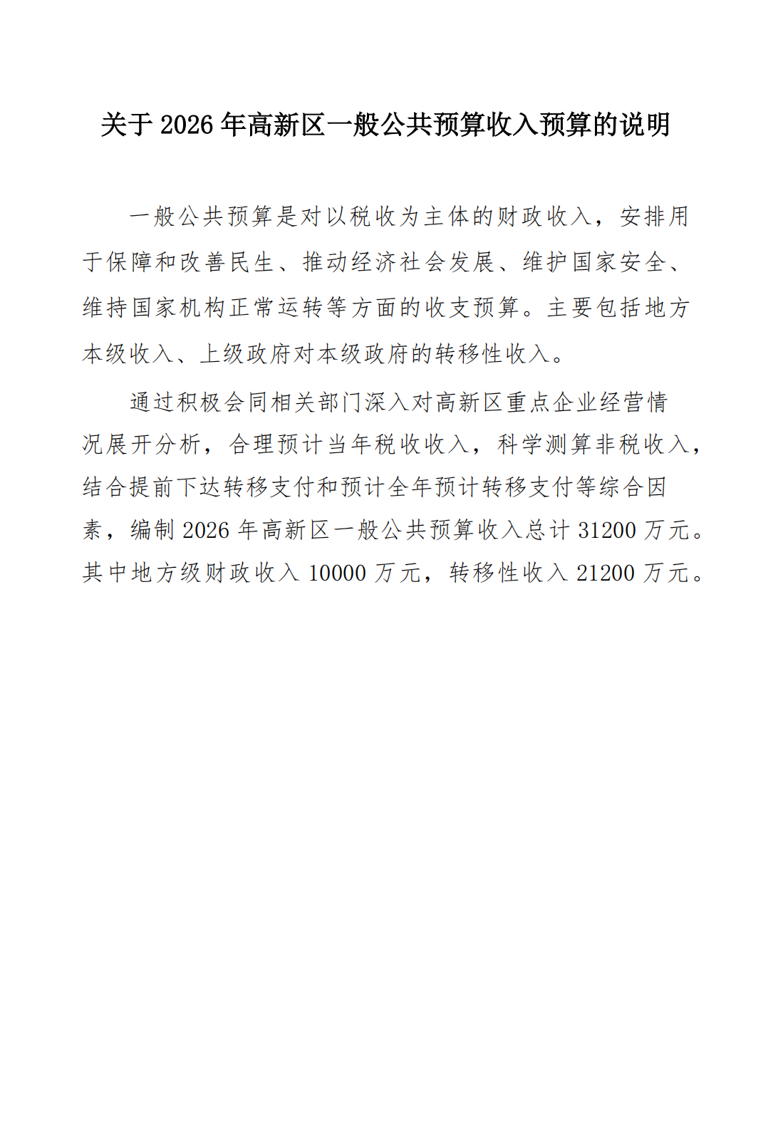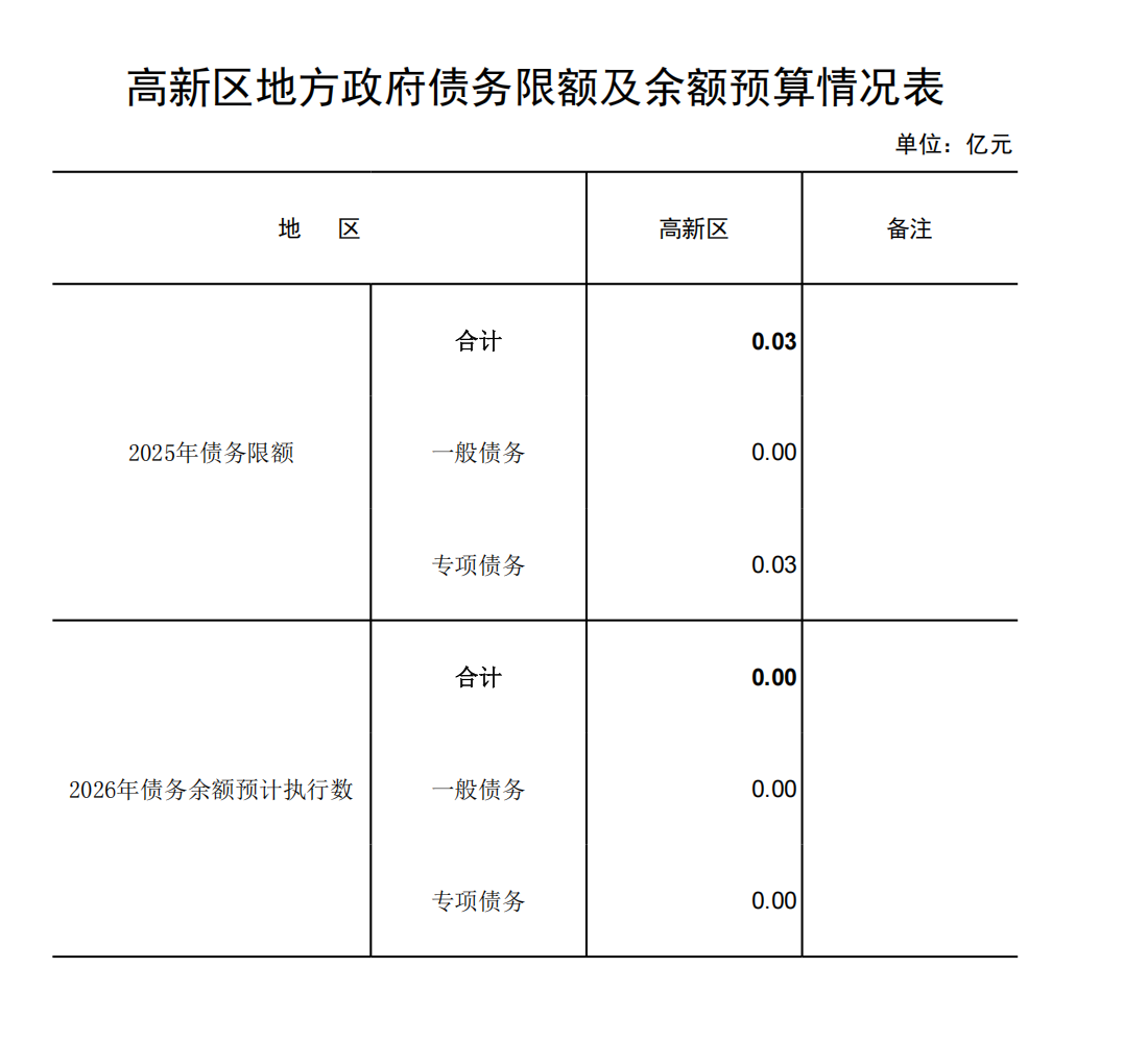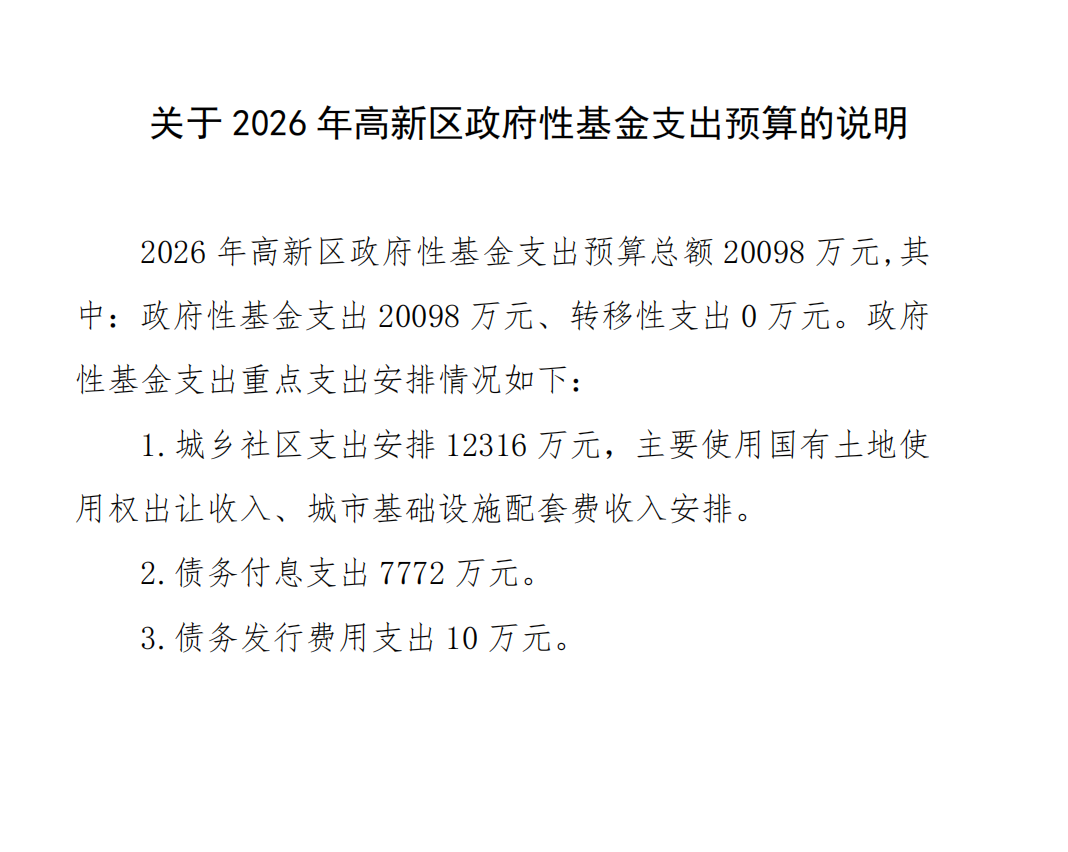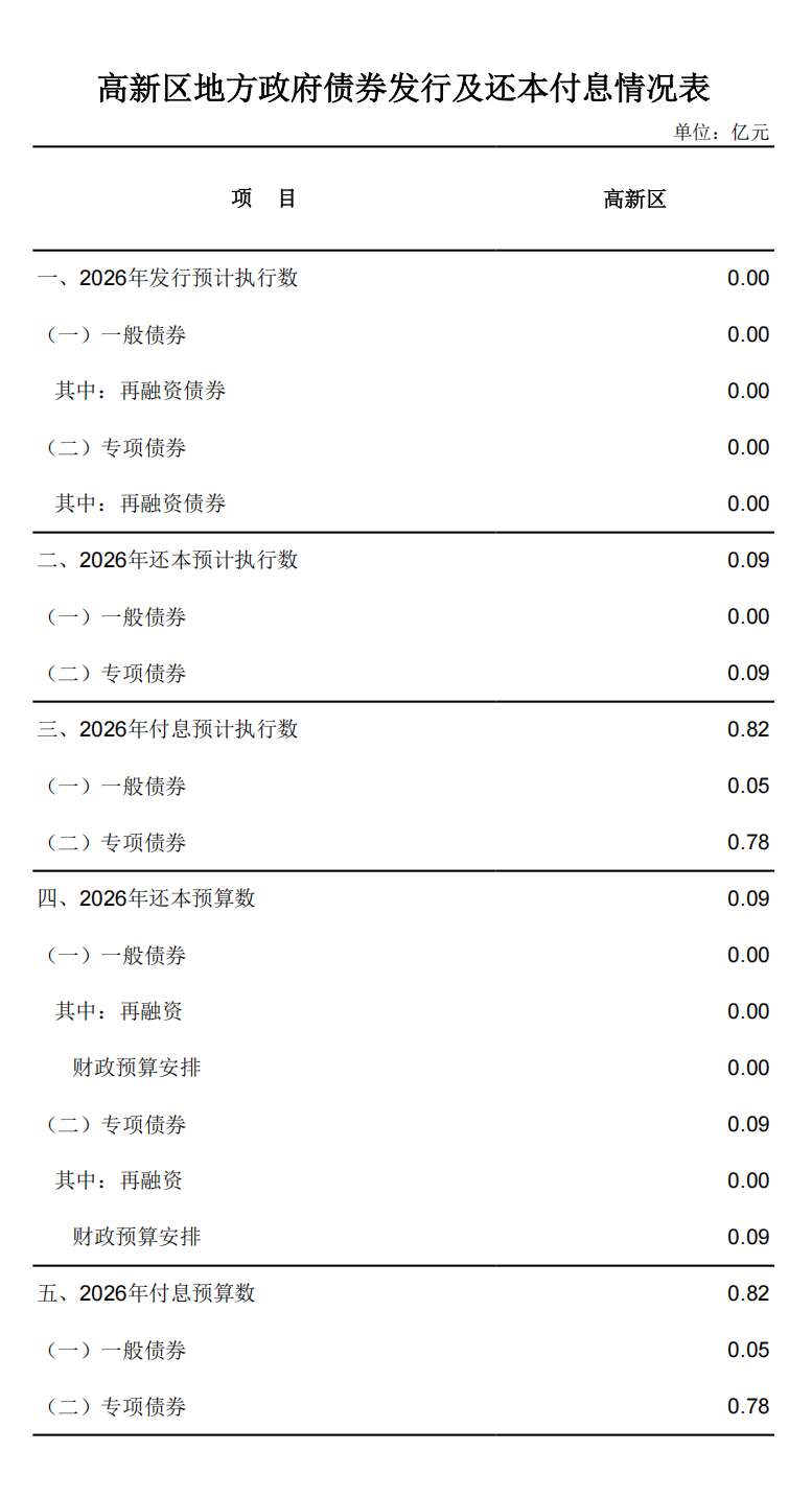 2026年高新区政府预算公开