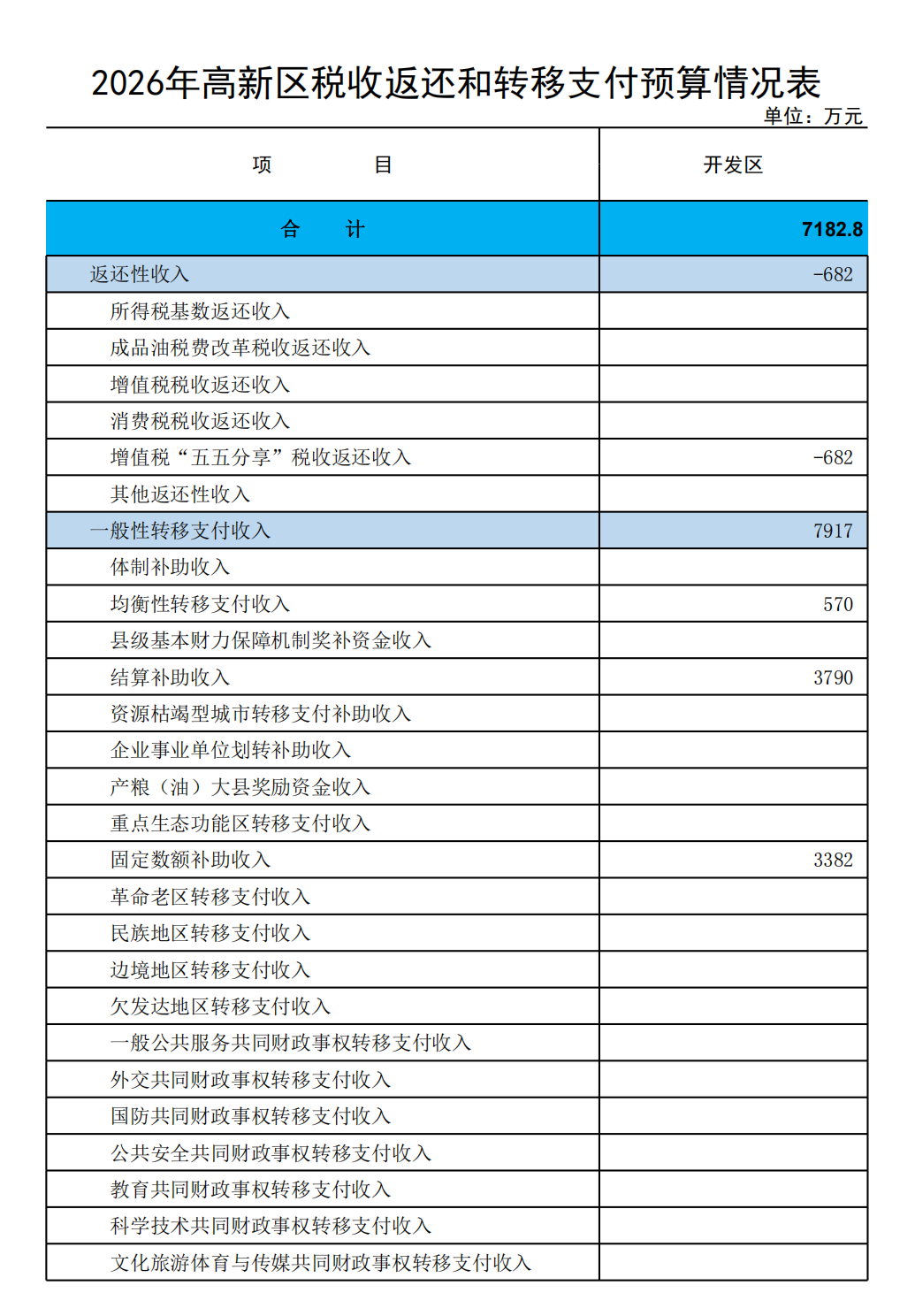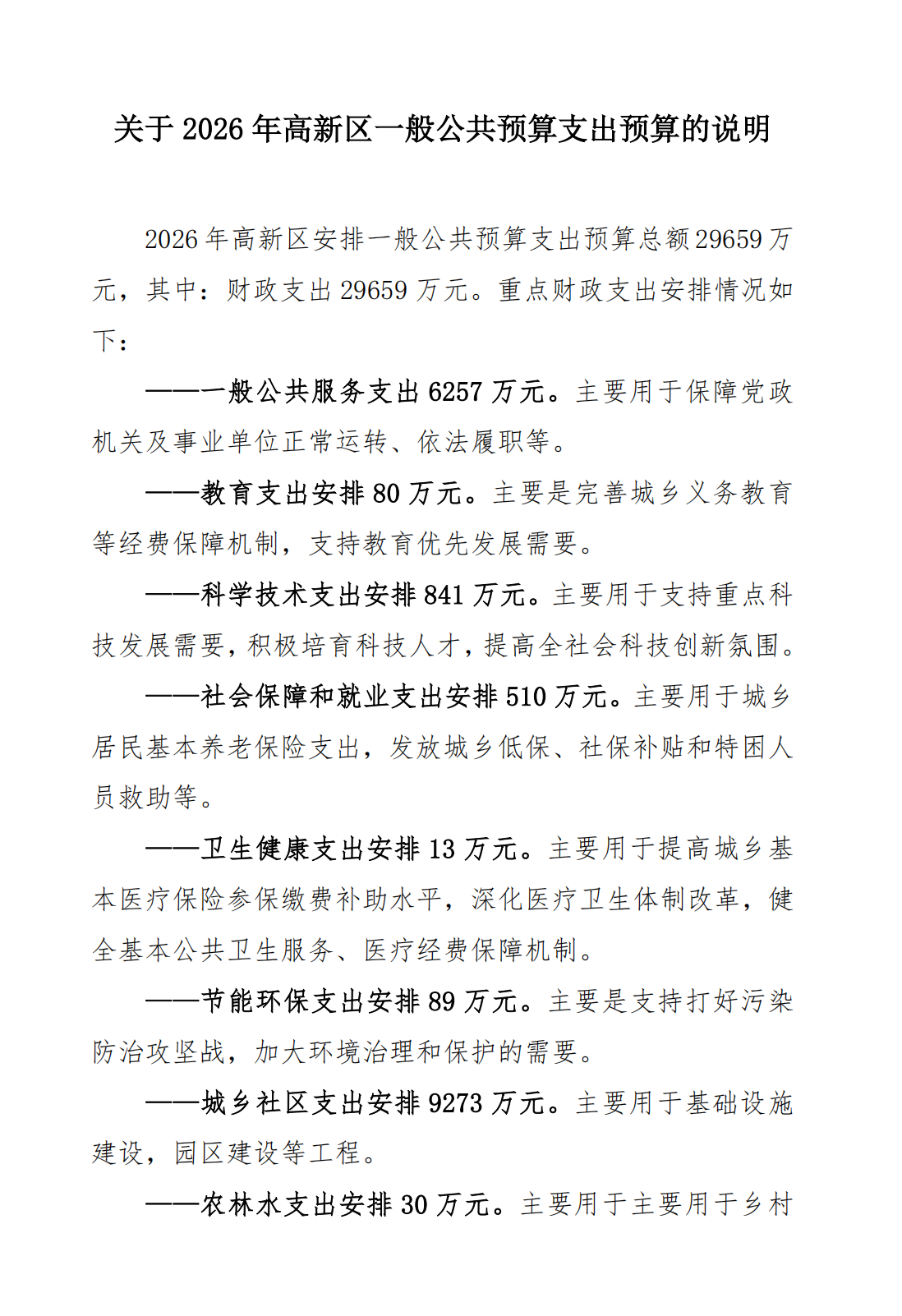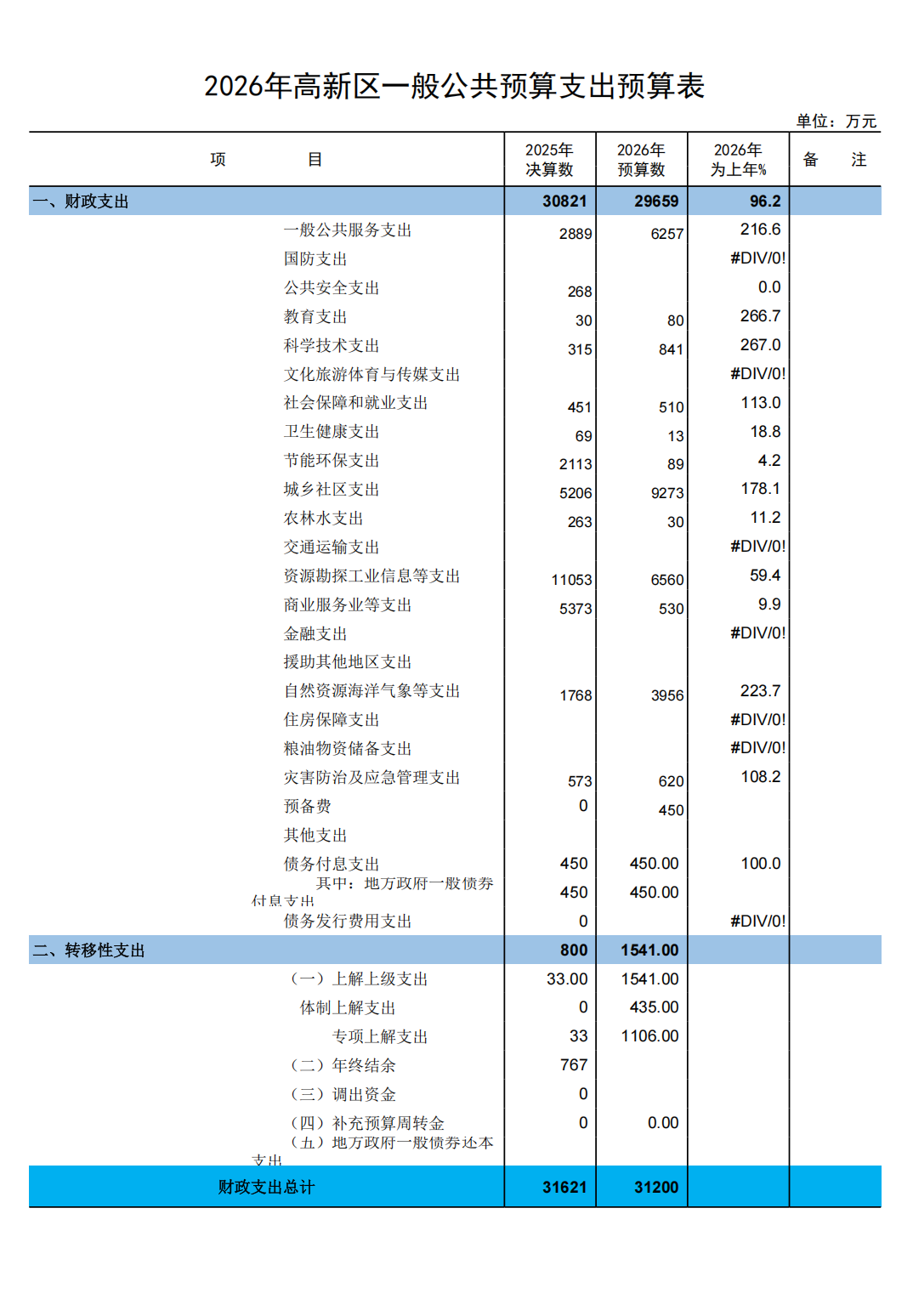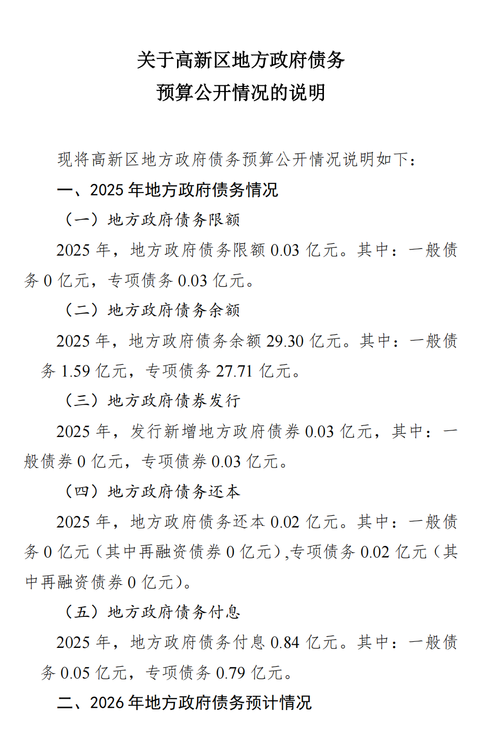 2026年高新区政府预算公开