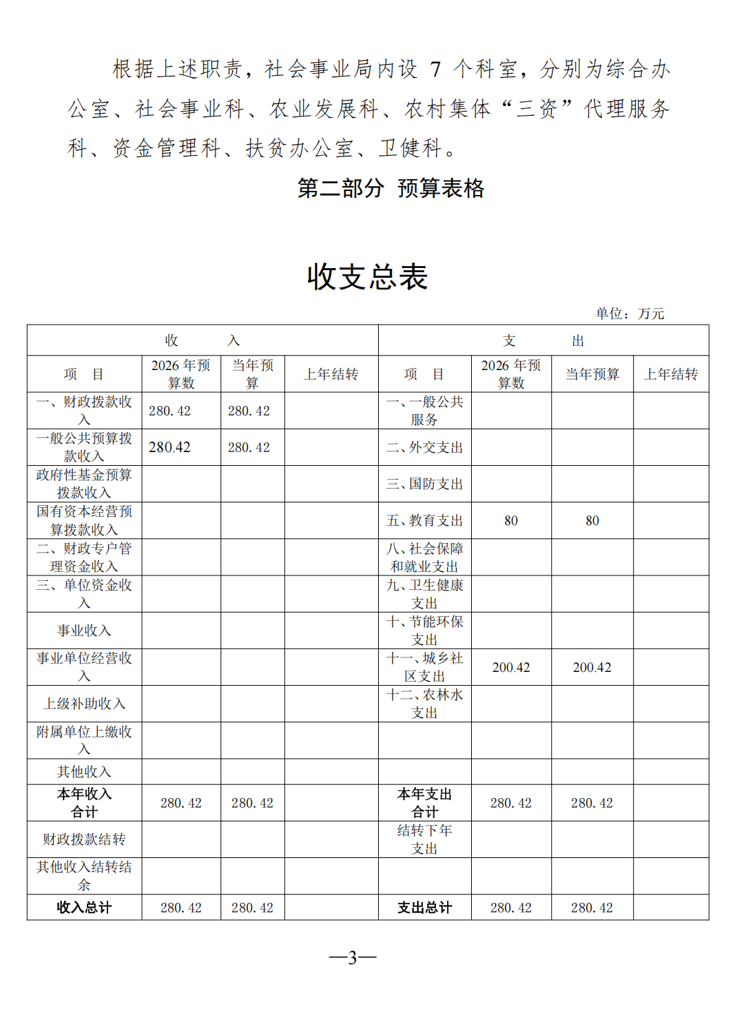 社会事业局2026年部门预算