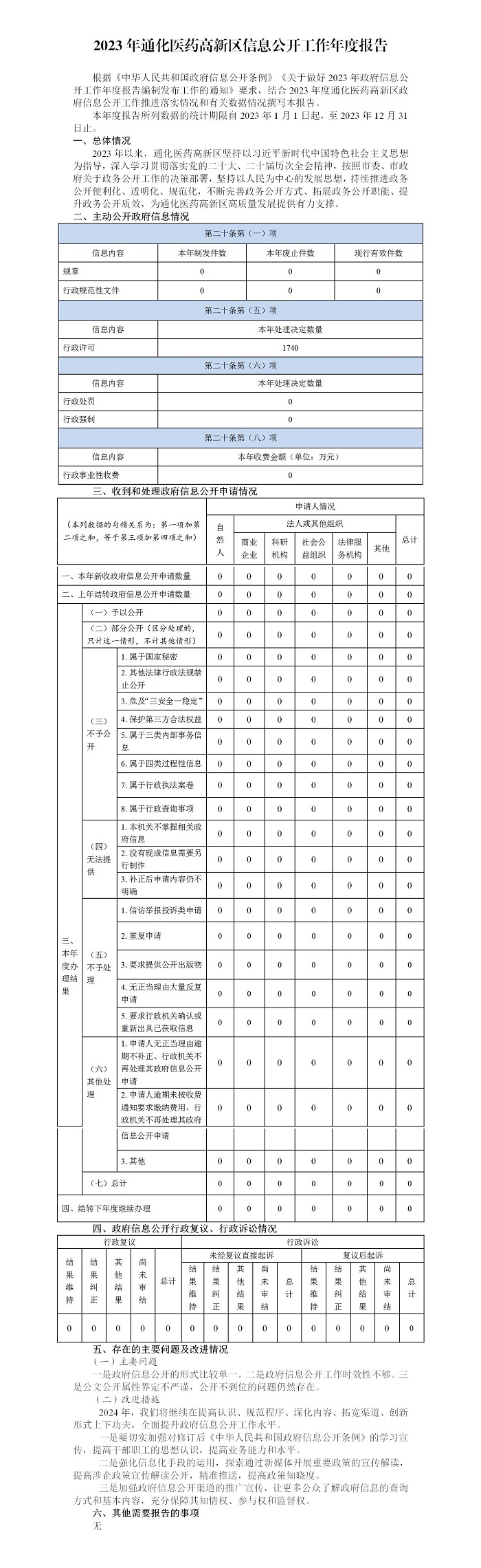 2023年通化医药高新区信息公开工作年度报告