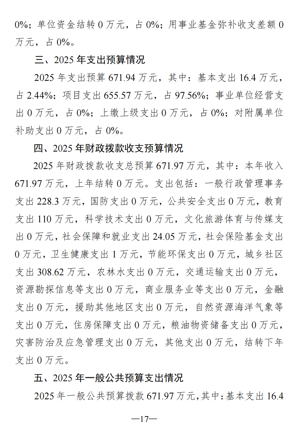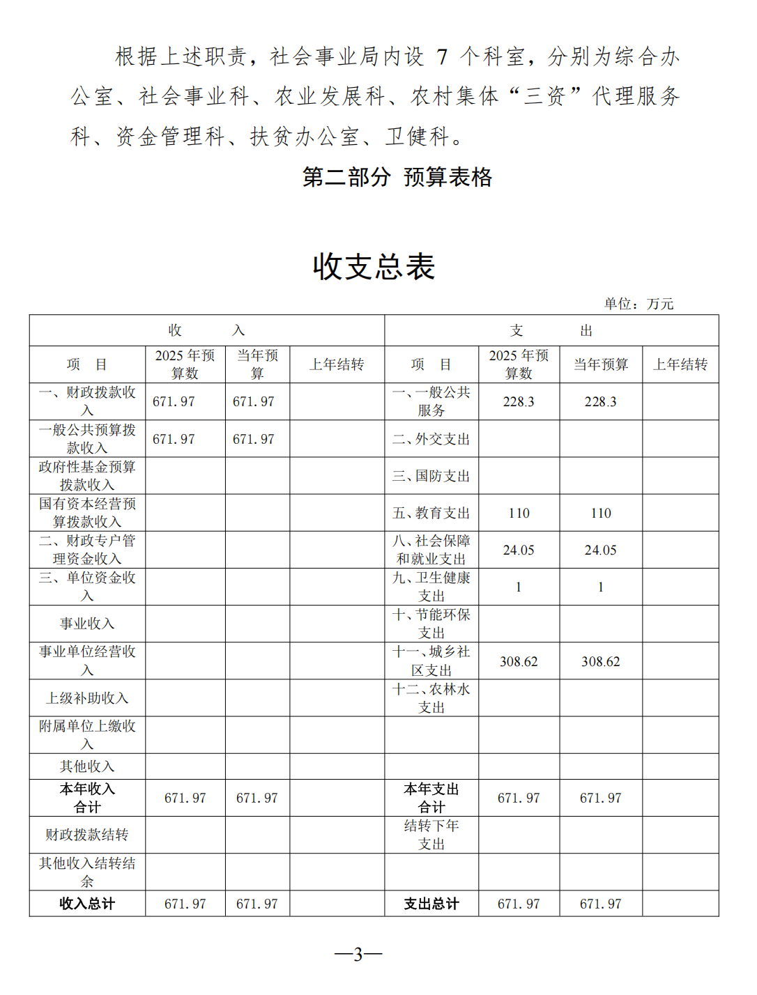 社会事业局2025年部门预算