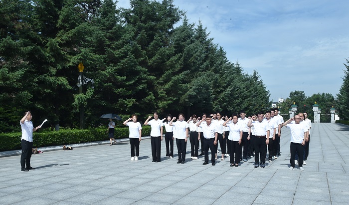 为庆祝中国共产党成立104周年,高新区组织全体预备党员,到杨靖宇烈士陵园开展祭扫烈士墓暨新党员入党宣誓活动。