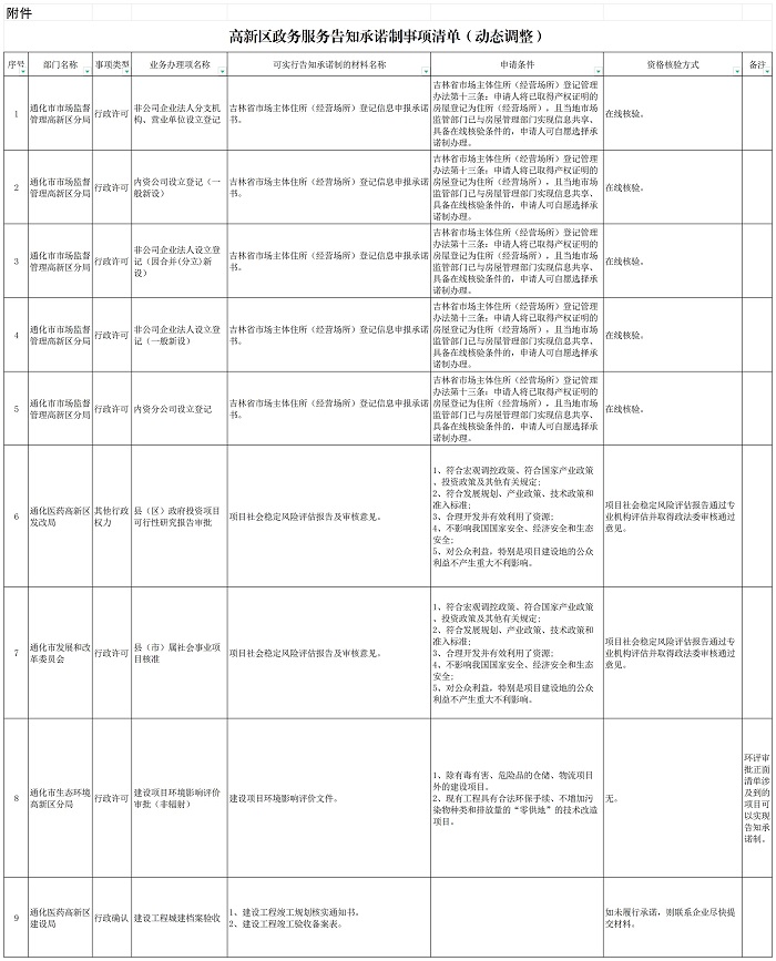 高新区政务服务告知承诺制事项清单(动态调整)